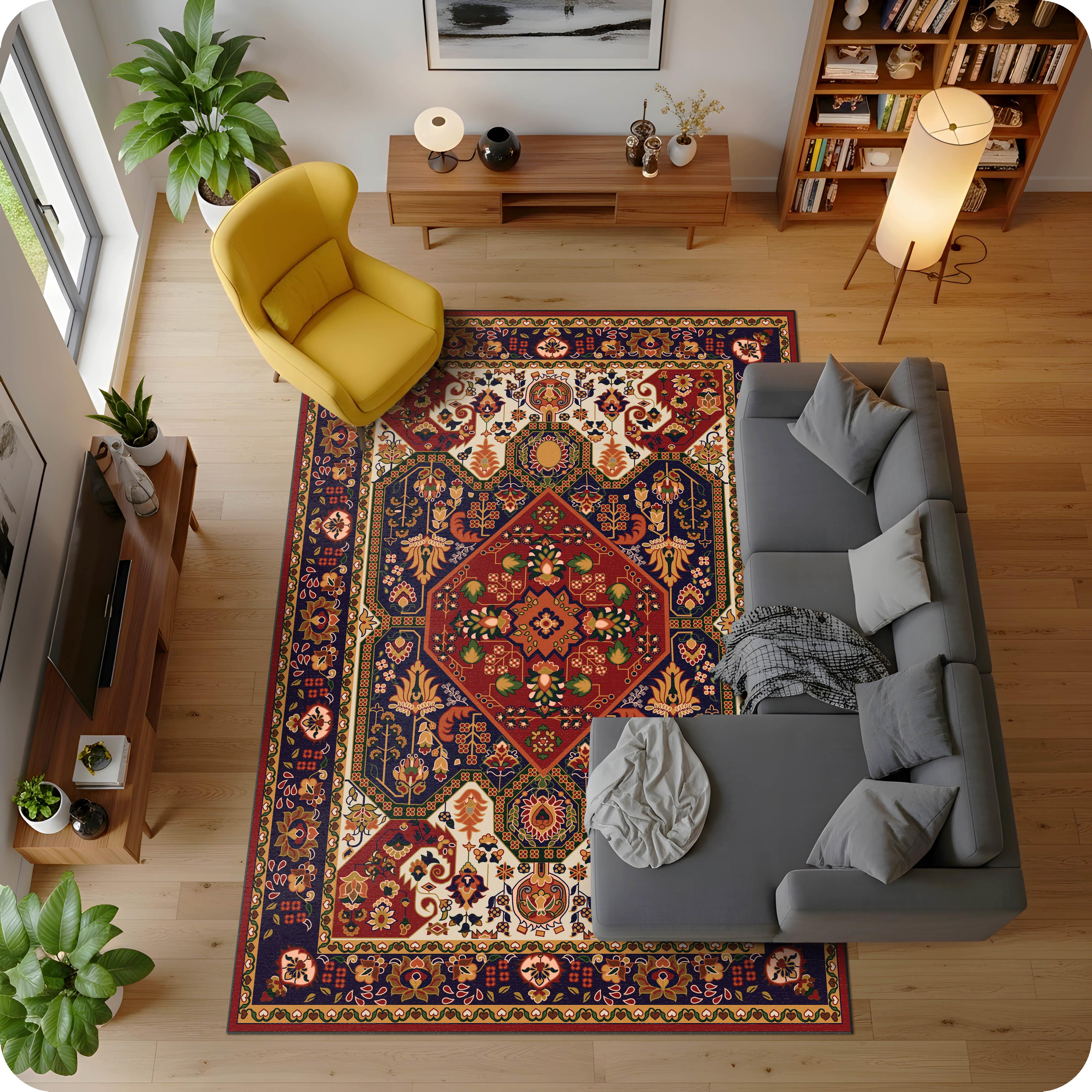 Kırmızı Lacivert Etnik Desenli Salon Halısı
