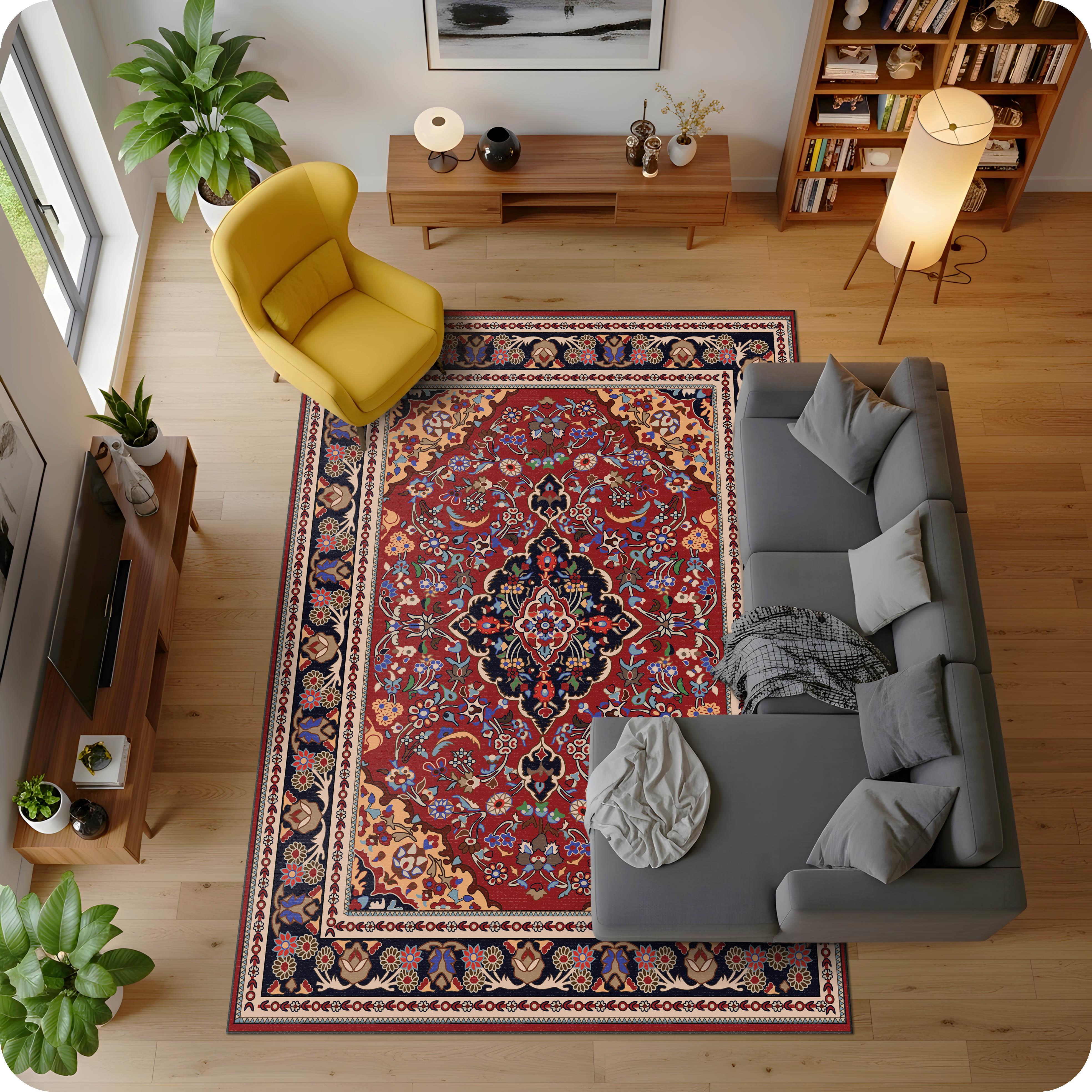 Kırmızı Siyah Geleneksel Desenli Salon Halısı