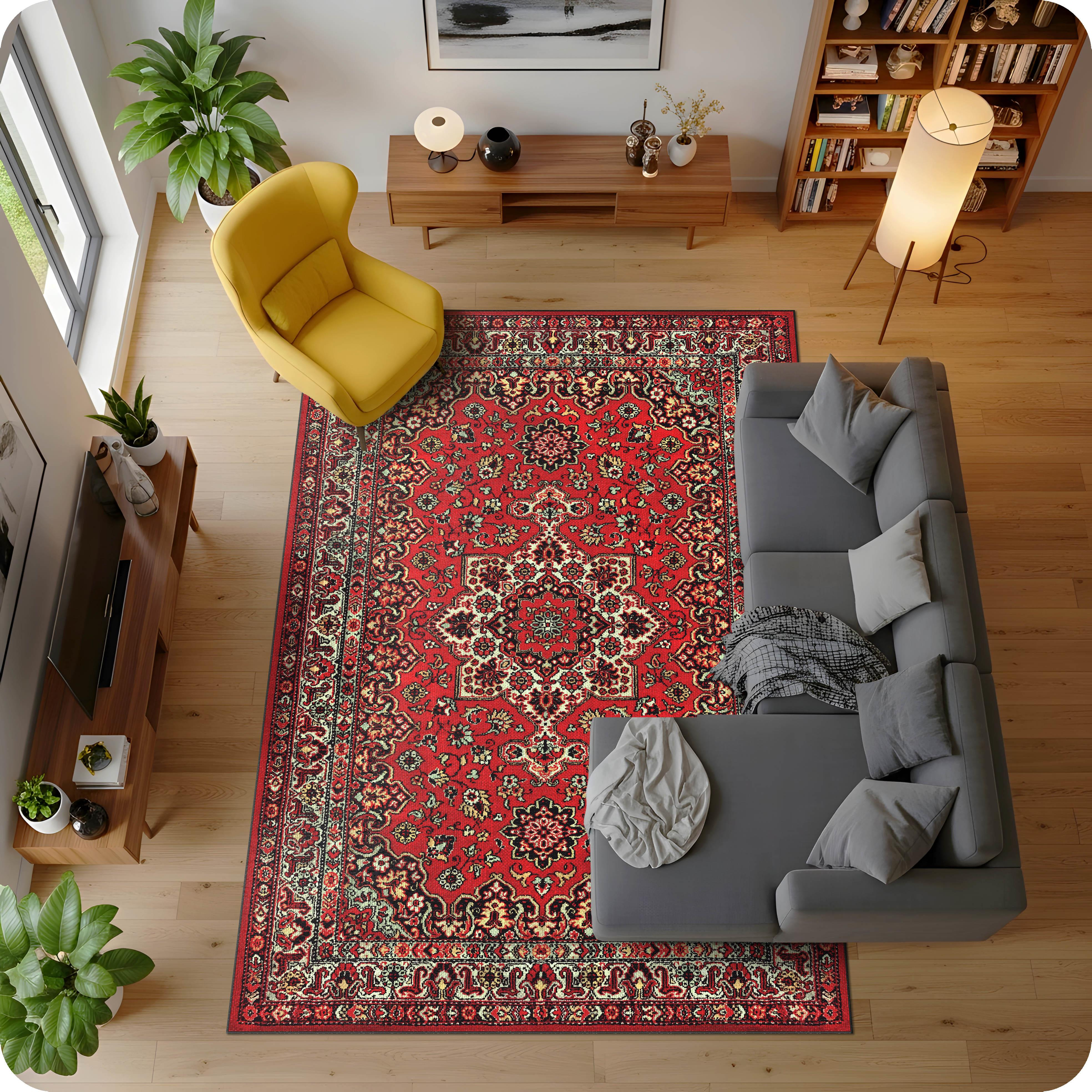 Klasik İran Desenli Kırmızı Zeminli Salon Halısı
